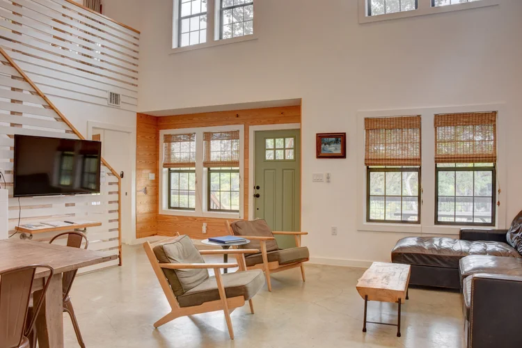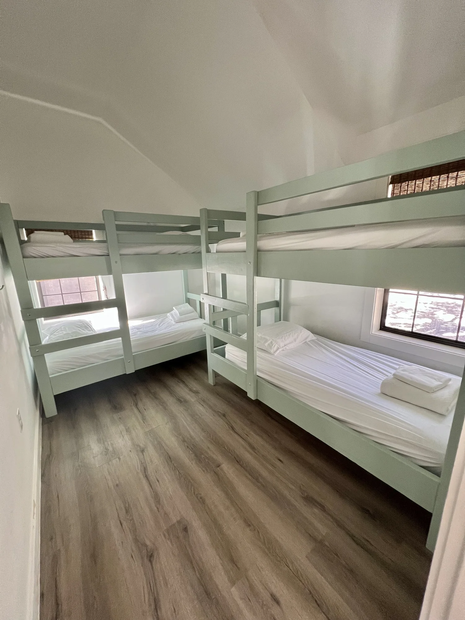 A room with 2 sets of twin bunk beds, situated upstairs. A double-vanity full bathroom is available. The Cantina Lofts have two stories, Downstairs you will find the main living area complete with a TV, the two private master bedrooms, a spacious kitchen with a dishwasher and a double-vanity bathroom. Upstairs, there's another TV area and two queen beds in a semi-private loft overlooking the downstairs living room. The Cabins are situated a short distance from the pool and have a stellar river view. These rooms are priced per person for double occupancy. This room is ideal for a couple or friends who will share a queen bed or share the room as one queen bed. To select these rooms as single occupancy there is a $200 additional fee added to your bill upon booking.